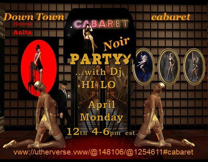 12th April 4pm est-Noir's Monday Party at "Cabaret" Hosted by Anita with support of DJ_Hi_lo - All Welcome !!